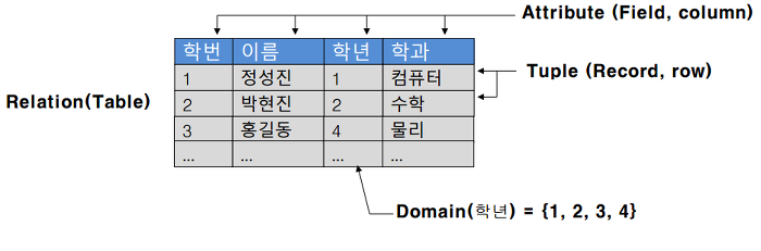 relation이란 '튜플'의 집합을 말한다. 튜플은 record나 row라고도 한다.