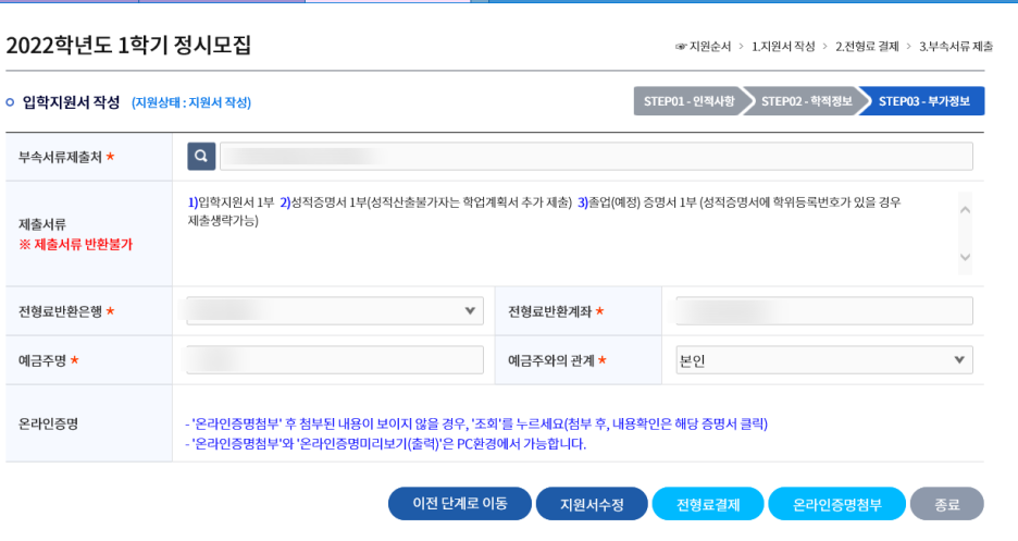 이 때 일부 선정된 대학들의 경우에는 '온라인 증명 첨부'를 통해서 우편/대면 제출을 하지 않아도 가능하게 되어있다.