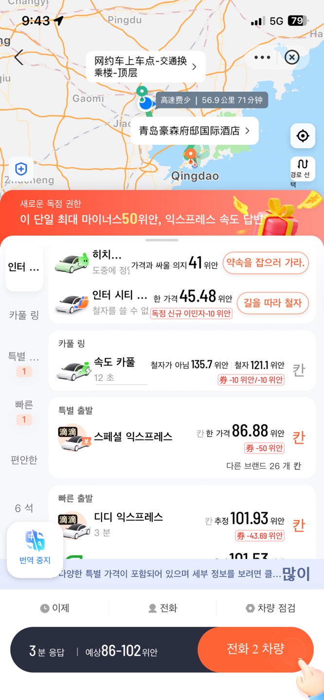 우리의 경우엔 DD로 호출한 택시기사가 '오늘 하루 너네 전담해줄게!'라고 제안해서