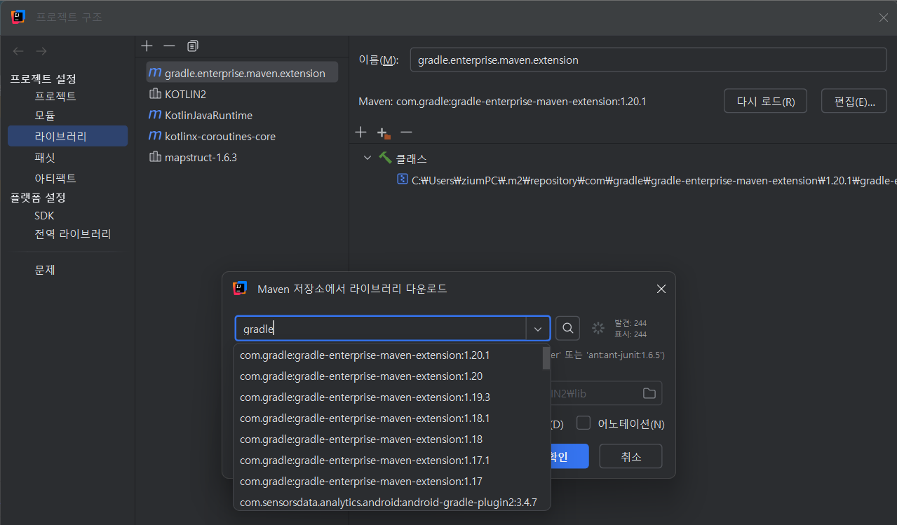 프로젝트 구조에서 gradle 의존성을 추가해준 다음에